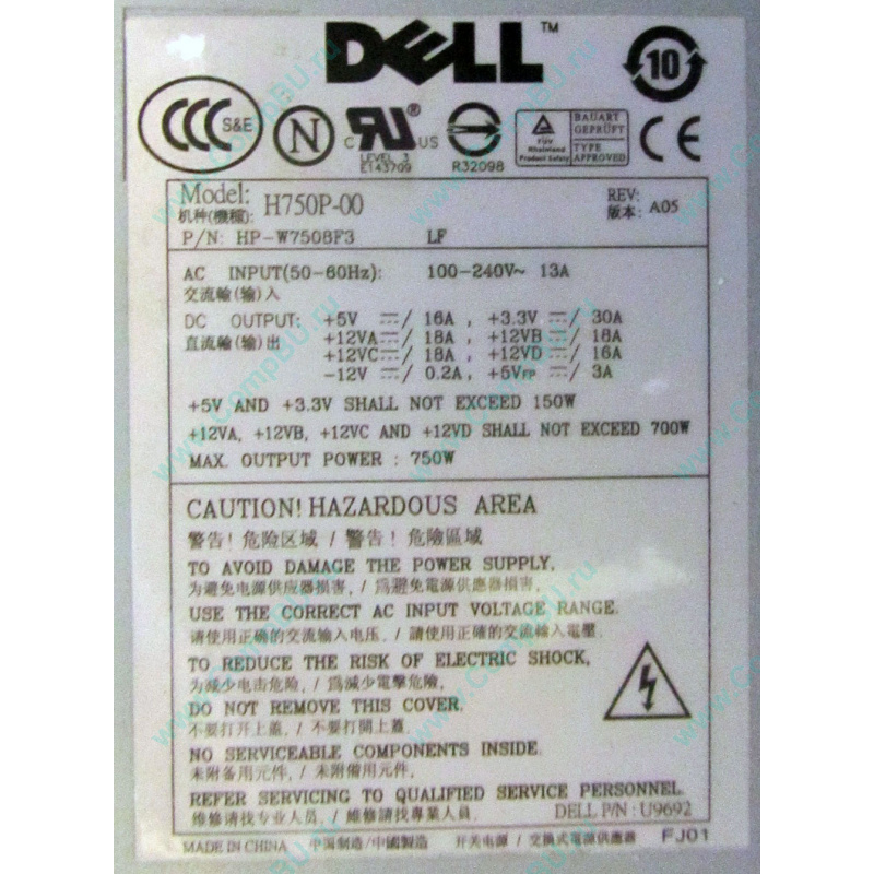 Блок питания: ATX 750W Dell H2750P-00, p/n HP-W750BF3